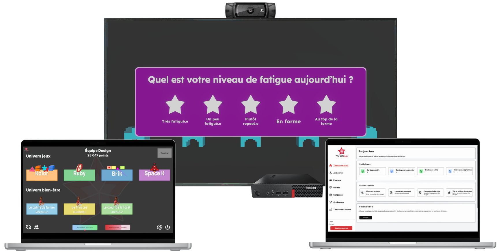 Créez de la cohésion dans vos équipes et mettez les en mouvement avec des challenges récurrents sur nos jeux vidéo avec détection de mouvements par caméra, créés avec notre technologie d’intelligence artificielle.